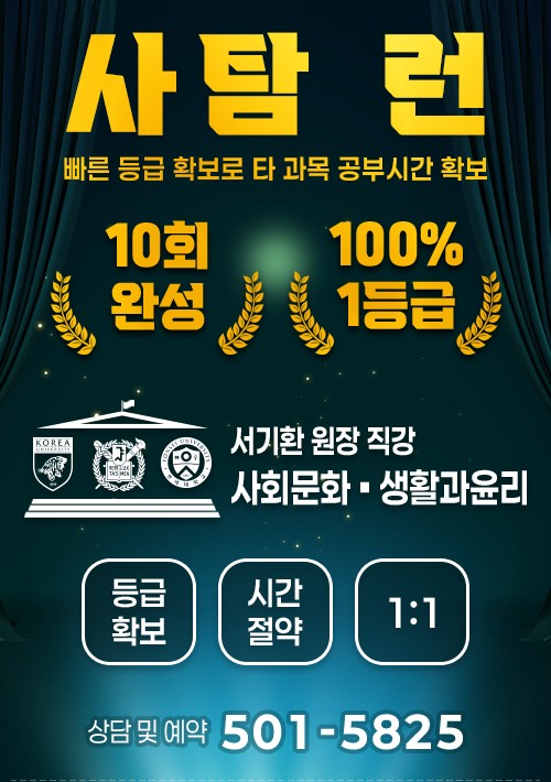 대치동에서 가장 오래 수능을 꿰뚫어 본 가장 정확한 수업 서기환원장 직강 사회문화/생활과윤리 사탐 런 빠른 등급 확보와 시간 절약이 핵심입니다 - 1등급, 혹은 만점 책임집니다 - 과탐 대비 엄청난 시간 절약 - 절약된 시간은 국어/수학 성적 향상의 촉매가 됩니다 100% 1등급, 10회면 충분 소수 한정, 1:1 * 구체적 커리는 개인별로 조금씩 다를 수 있습니다 학원명 : 에듀-퍼스트학원 등록번호 : 제 9075호 [학원 교습료등 반환및 수강료 기준] I. 학원 수강료,이용료,교습료 반환에 대한 안내 (1) 학원 수강료,이용료,교습료 반환 가능 여부: 가능 (2) 학원 수강료,이용료,교습료 환불 기준<반환기준표 보기> (3) 학원 수강료,이용....... <img src="https://blogthumb.pstatic.net/MjAyNTEyMDVfMjkw/MDAxNzY0OTM1MDM5ODQ5.xV1sfhX7XdXyogOP6rbJMx_Rpoj0TMyeObnxrM7OcPMg.X-5ftzanZhkfQnU_KXSyMErx7Xqx3S6YrM-WX7ECIkgg.JPEG/%BB%E7%C5%BD%B7%B1_%C0%CC%B9%CC%C1%F61.jpg?type=s3" />
