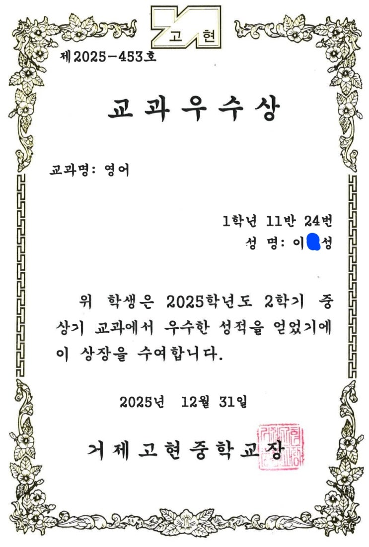 2025년 교과우수상과 수학경시대회 상
