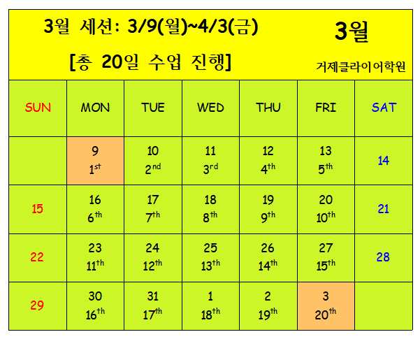 2026년 3월 수업 일정