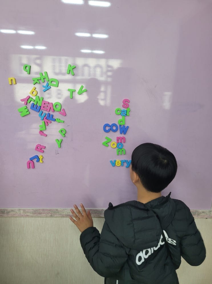 워너비 G3 (초3) 아이들 칠판에 영어단어 자석으로 영단어 만들기 게임을 하고 있습니다~ 게임으로 수업을 할 경우에 어떤 아이들은 아직 영어 단어를 많이 만들수가 없어서... 게임에 져서.. 약간 짜증날 수 있지만요...ㅜㅜ 아이에게 위로 한스푼 괜찬다고 도닥도닥 한스푼 다음번에는 더 잘 할 수 있다는 확신과 용기 한 스푼을 첨가하면요~ 그 짜증의 감정이 아이의 학습 동기를 불러일으키는 좋은 자극이 됩니다~^^ 혹 가정에서도 우리 아이가 져서, 맘 먹은대로 안되서. 속상해 하는 경우에 별일 아닌데 짜증낸다고 아이를 혼내시거나 "그 선생, 그 학원 참 이상하네? 공부시키랬더니 얘한테 마상(마음의상처)이나 주고 말이야! 그 까....... <img src="https://blogthumb.pstatic.net/MjAyNTExMTFfNjUg/MDAxNzYyODI5MTcwODU2.P0_z6X-Aotzxe1t5fOlZ4b9oQjWv8S5mTUBeNeRqVkAg.sdE2DYvhcLqd4T7oI3M2lhtOP9zIEB6Ey_0hfB5qAuAg.JPEG/900%A3%DF20251105%A3%DF144302.jpg?type=s3" />