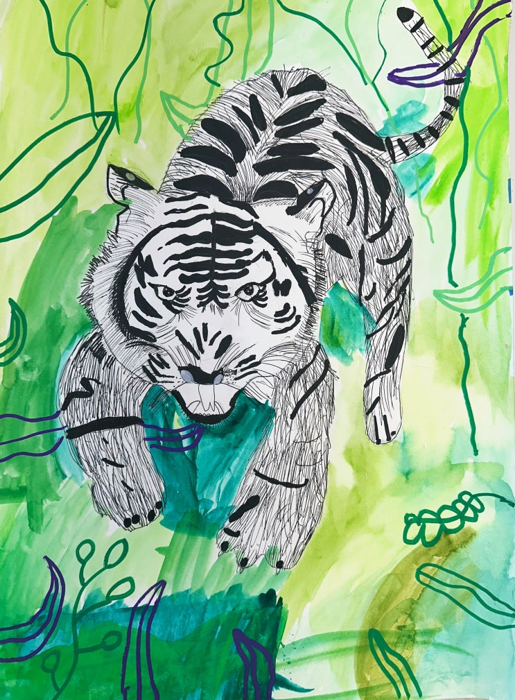 양산 증산 아동미술학원- 동물 털 표현 (펜 드로잉)