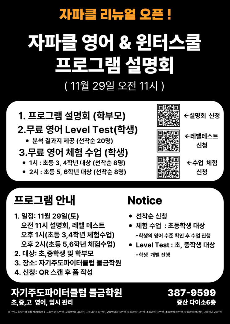 <2026 관리형 학원 자기주도파이터클럽 양산 윈터 스쿨 모집 안내> 안녕하세요, 자파클 입니다. 겨울방학은 우리 학생들이 습관을 바꾸고 성적을 역전할 수 있는 아주 중요한 시간입니다. 2026 겨울방학에는 자기주도파이터클럽 물금학원에서 스스로 공부하는 힘을 키워주는 진짜 자기 주도 프로그램을 만나보세요. 왜 양산 자파클의 윈터 스쿨인가? 스스로 공부하는 습관 만들기 겨울방학 동안 학생들이 스스로 계획·실천·점검하는 자기 주도 학습력을 키우는 데 중점을 둡니다. ✔ 기초 다지기 + 약점 보완 + 성적 향상 각 과목의 취약한 부분을 정확히 파악하여 단기간에 집중 보완할 수 있도록 개인 스케줄 설계합합니다. ✔ 학습....... <img src="https://blogthumb.pstatic.net/MjAyNTExMjNfNjcg/MDAxNzYzOTA5NjIxNjQy.qcQA0Q4bez6EWg4R77ADE-IYfE_3J5TlF5tp-t5wmrgg.zun0ATd-gHdBtkr_rx1AszIh7TApxcH34rRN2co9XvIg.PNG/%C0%DA%C6%C4%C5%AC-%BC%B3%B8%ED%C8%B8-%C0%FC%B4%DC%C1%F6-001.png?type=s3" />