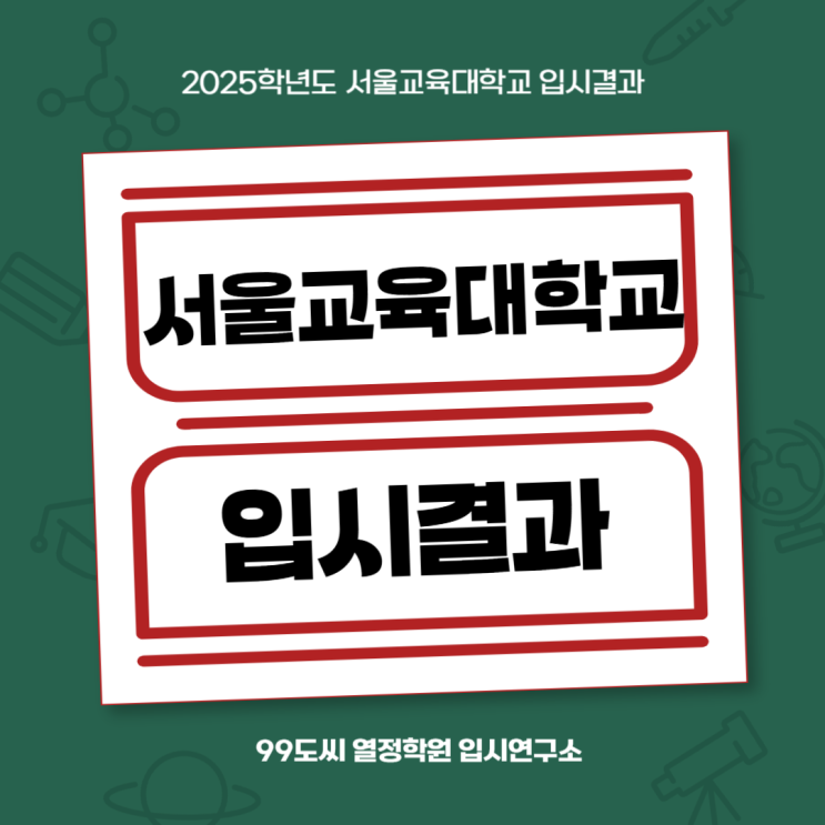 안녕하세요 99도씨 열정학원 입시연구소입니다 2025학년도 서울교육대학교 수시등급 정시입결 입시결과에 대해 알아보도록 하겠습니다 대한민국의 교육이념에 입각하여 국가와 인류사회 발전에 필요한 학문의 심오한 이론과 응용방법을 교수·연구하고, 아울러 사표로서의 지도적 인격을 도야하여 유능한 초등학교 교사를 양성함. ·초등학교 교사양성을 주된 목적으로 하는 국립대학교 ·교직 전문성을 한몸에 지닌 전인적 인격을 구비한 교육자 양성 ·세계적인 교원종합대학교로 발전함. 3년 동안의 서울교대 입시전형 유형별 분포도입니다 정시 > 학생부종합 >>> 학생부교과의 분포가 꾸준하게 유지되는 것을 볼 수 있습니다 3년 동....... <img src="https://blogthumb.pstatic.net/MjAyNjAzMjBfMTY4/MDAxNzc0MDEwMjI2MTQ2.FBOtvvKmFttq2ulmFdYoEyzDRNgl_P1YDTLbUU-bAB0g.SLg4RbxvKtWopV2KCOg5P2gqV0eyiWwWXezl8rOZs1og.PNG/%C0%D4%BD%C3%B0%E1%B0%FA_%BD%E6%B3%D7%C0%CF-001_%281%29.png?type=s3" />