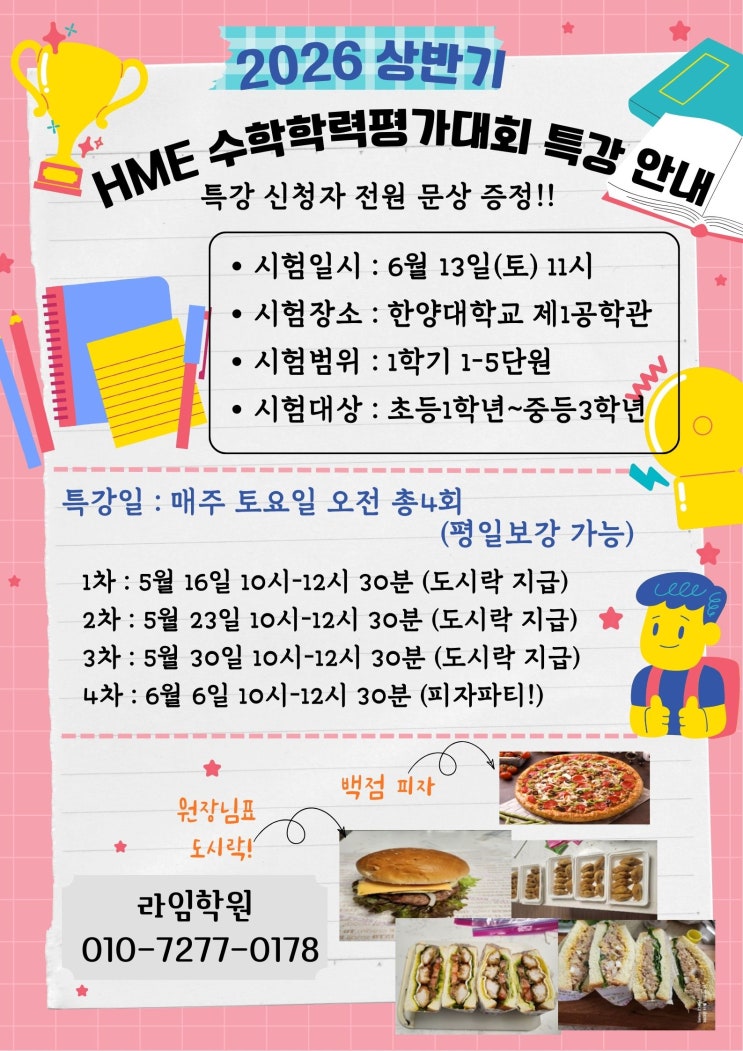 매년 1학기와 2학기에 실시되는 수학 학력평가 절대 하지 말아야 할 것 하나!! 있는 실력 그대로 시험봐야지 하는 것 어떤 시험이든 성실하게 준비해서 치르고 오답정리해야 내가 아는 것과 모르는 것이 정리된다. 학교에서 간단히 보는 쪽지시험도 그렇게 해야한다고 생각하는데 전국에서 여러학생들이 치르는 이렇게 큰 시험을 실력만큼 본다면 .... 아이의 수학 자신감을 떨어뜨리는 지름길이라 생각한다. 반드시 범위내 학습을 하고, 가능하면 내가 풀수 있는 문제보다 한 단계 어려운 문제에 도전해서 해결하는 훈련도 하면 좋다. 연습하는 과정에서 반드시 실력향상은 동반된다. 성장하는 과정과정에서의 시험은 아이의 성장과 본인의 위치....... <img src="https://blogthumb.pstatic.net/MjAyNjA0MDJfMTI5/MDAxNzc1MTIzMjAzMDY5.Le9i1uR3EXRIObPiLt-_BNODBsCuNIU5UXesTpnjWagg.hreAWZzsyMGtnhuDb71dxczluwO3YAELqU_dbO13J5cg.JPEG/KakaoTalk_20260327_124045032_02.jpg?type=s3" />