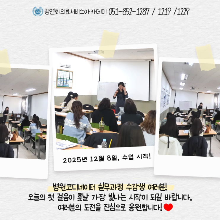 안녕하세요! 정연화 의료서비스 아카데미입니다. 드디어 12월 8일, 병원코디네이터 실무과정 20일 과정의 첫 수업이 힘차게 시작되었습니다. 새로운 시작 앞에 설렘과 긴장, 그리고 각자의 목표가 함께 어우러진 의미 있는 하루였어요. 오늘은 정연화 교수님의 의료서비스인의 대인관계 수업으로 실무과정의 첫 문을 열었습니다. 병원이라는 공간이 단순한 업무의 장소가 아니라, 수많은 사람의 감정과 상황이 오가는 공간이라는 점을 되짚어보며, 의료서비스 종사자로서 갖춰야 할 태도와 소통의 기본을 차분하게 배워보는 시간이었습니다. 환자를 대하는 말 한마디, 표정 하나, 눈맞춤의 중요성부터 의료진과의 협력 속에서 필요한 관계 형성까....... <img src="https://blogthumb.pstatic.net/MjAyNTEyMDhfNjEg/MDAxNzY1MTk5NTcxNTc5.eXkEePNIWVdS7uKkvfEEtAB5pUHIh6mOJy22ixneo2Eg.aNimBCRmKSWUJIGErApSy0FqoGp8LstsOxVLkmp6YnAg.PNG/%BA%B4%BF%F8%C4%DA%B5%F0%B3%D7%C0%CC%C5%CD_%C1%A4%BF%AC%C8%AD%C0%C7%B7%E1%BC%AD%BA%F1%BD%BA%BE%C6%C4%AB%B5%A5%B9%CC_%BD%C7%B9%AB%B0%FA%C1%A4%B0%B3%B0%AD_1208.png?type=s3" />