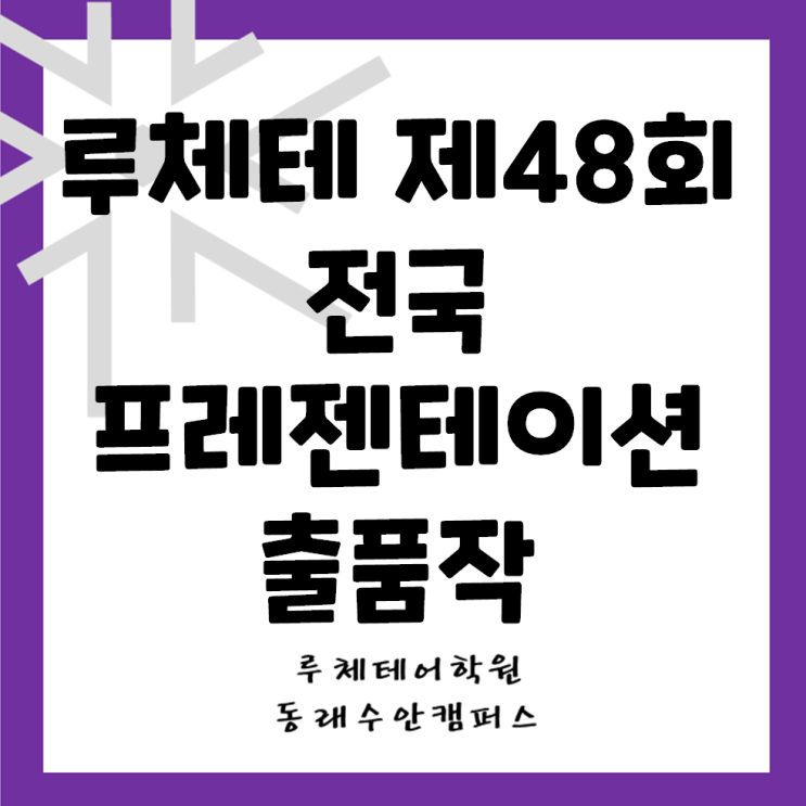 안녕하세요. #루체테어학원 동래수안 캠퍼스 입니다!! 제48회 전국 영어 프레젠테이션에 출전 한 우리 친구들을 응원하고자 합니다.^^ 심사기간 : 11/14 (금) ~ 11/21 (금) 심사기준 : 내용 70% + 좋아요 클릭수 30% 응원하는 영상을 끝까지 보시고 '좋아요'와 '#루체테TV' 구독까지 꾹! ◈ 참가부문 (부문별 1팀) eKong 1 레벨 (Seed~Sprout) eKong 2 레벨 (Bud~E3) E 레벨 (E4~E6) Advanced 레벨 (E7~E9, M11~M13(초등)) ◈ 부문별 시상기준 1등: 50,000원 장학금(상품권) 2등: 30,000원 장학금(상품권) 3등: 10,000원 장학금(상품권) 결과발표 : 11/28(금) 오후 12시 (Youtube 루체테 TV) 루체테어학원 홈페이지 http://l....... <img src="https://blogthumb.pstatic.net/MjAyNTExMTRfMTg2/MDAxNzYzMDk4MDg4OTUx.txtFr1nqf6355PIqTRptTBATaj1AzLHA-ev2mbo2Sv0g.6V-93pjk3GE_QwRT7I6zjYfGplXWcnCi6iEE14j55-8g.PNG/image.png?type=s3" />