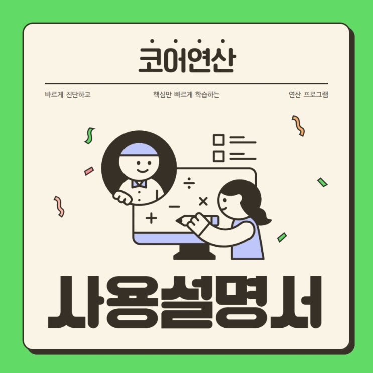 바르게 진단하고, 핵심만 빠르게! 연산 실력을 제대로 키우는 코어연산 프로그램 코어연산은 진단테스트로 아이의 현재 레벨을 정확하게 파악하고, 코어 교재 또는 온라인 트레이닝을 통해 단계별로 훈련하며 연산 실력을 탄탄하게 완성하는 프로그램입니다✨ 코어연산이 더 궁금하다면? 수학을 더하다 학원으로 문의해 주세요 <img src="https://blogthumb.pstatic.net/MjAyNTExMjZfMTAz/MDAxNzY0MTU5NDY4NzEx.iDID1_FkbGJ5SnWGFIinS0RNz1nI4h9Z80qnnfvBYAQg.dVBfU35JEW_xn5j8hedlFwb44Sf8RalkH1UdAlfIPnYg.JPEG/900%A3%DF1764159426026.jpg?type=s3" />