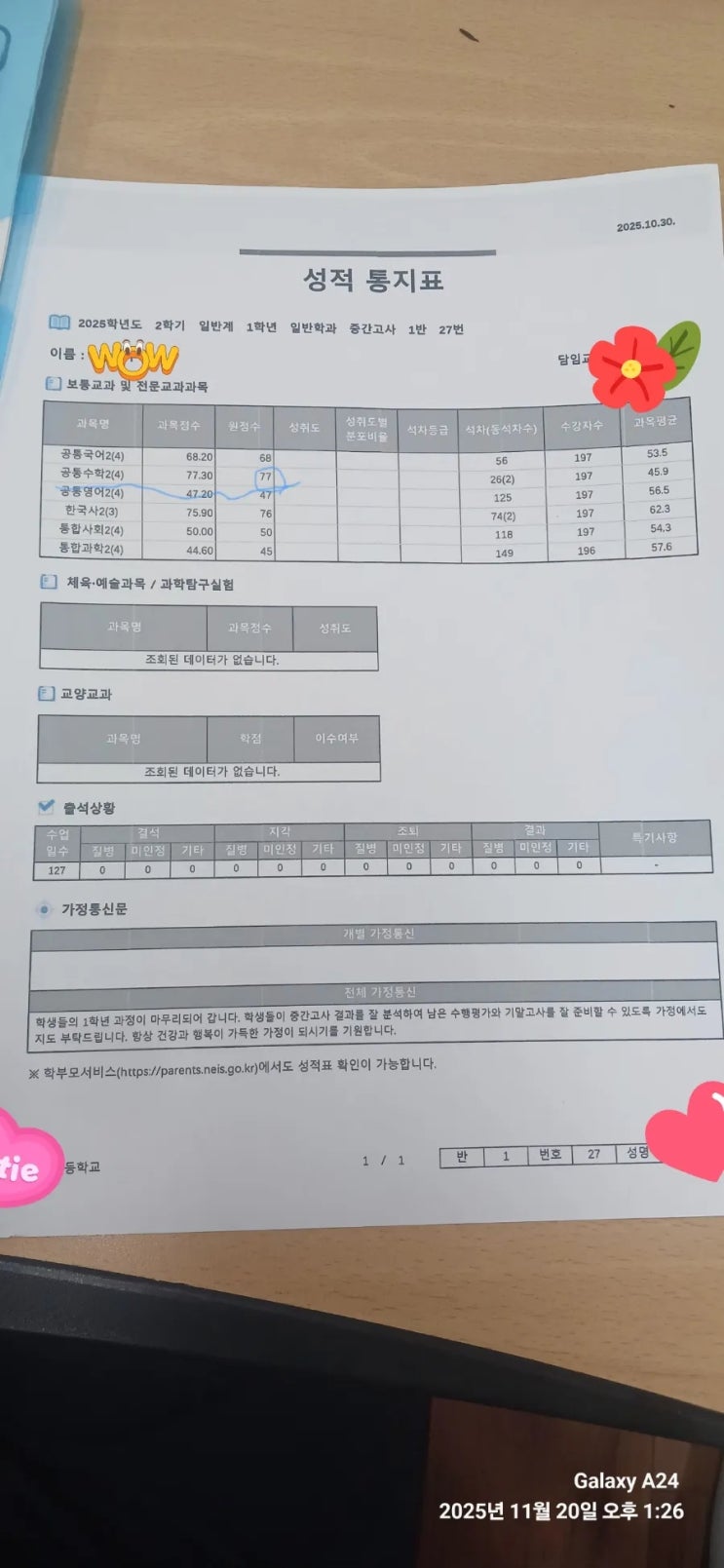 수학점수가 젤 높은 아이. 저희 학원의 대부분의 아이들이 수학점수가 젤 높아요! 한두문제 실수만 줄였어도 등급이;;;;;;; 기말엔 더 열심히! 안락동 수학학원! <img src="https://blogthumb.pstatic.net/MjAyNTEyMTBfMTQ3/MDAxNzY1MzUzMjk5NDAx.DvH-482PDrUv40axcRcxy2Q2dgN9WJ2u3IarNdS0aDAg.XwyjvUIpfeOAH05-FYoBshm967x-p8m6y5WEBiPfUzcg.JPEG/900%A3%DFResized%A3%DF20251120%A3%DF132625.jpeg?type=s3" />