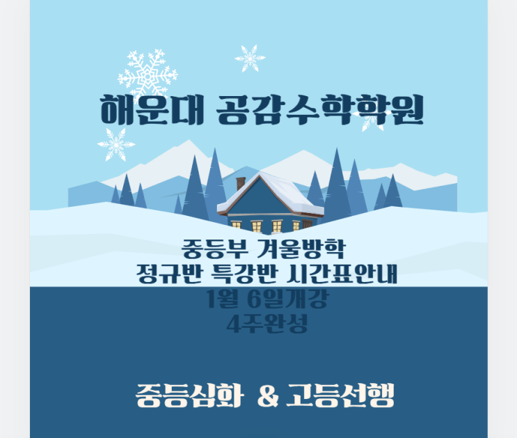 해운대 공감수학) 중등부 겨울방학 정규반 4주완성 특강반 개설안내 & (원장직강 고등부 시간표 첨부)