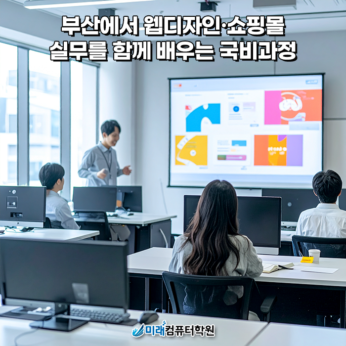 1. 부산에서 웹디자인·쇼핑몰 실무를 함께 배우는 국비과정 부산에서 웹디자인과 쇼핑몰 운영을 한 번에 준비하고 싶다면 미래컴퓨터학원의 웹디자인실무·쇼핑몰관리 양성과정을 추천합니다. 포토샵과 일러스트를 기반으로 상세페이지, 배너, 썸네일 등 실제 쇼핑몰에 쓰이는 디자인을 연습하면서 온라인 판매까지 연결되는 흐름을 배울 수 있는 국비지원과정입니다. 내일배움카드만 있으면 국비지원으로 수강이 가능해 수강료 부담을 크게 줄일 수 있어 부산 국비지원학원을 찾는 분들께 특히 잘 맞습니다. 2번. 포토샵·일러스트 기초부터 실무 디자인 감각까지 수업은 포토샵, 일러스트의 완전 기초부터 시작해 툴 사용법을 하나씩 익히며 진행....... <img src="https://blogthumb.pstatic.net/MjAyNTEyMDhfNDcg/MDAxNzY1MTc1ODMzMzQy.AkQwHc2_Zwkk_Z6T04jVQ23BqoYAkZeTH_hE3ZbSfH0g.FOLdXJQYpykxt7JyfOW_Kkzhf7X_cT3x1-cHr80ZZdEg.PNG/%BE%C6%C6%AE%BA%B8%B5%E5_1.png?type=s3" />