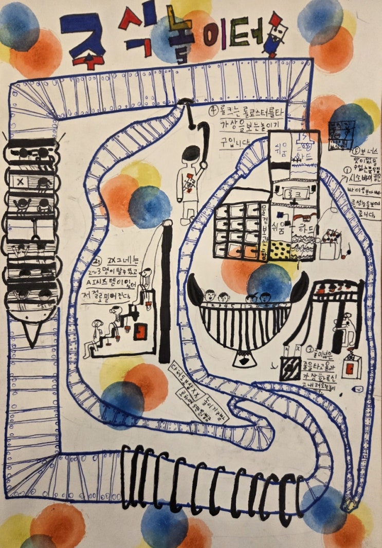 미래 놀이터는 어떤 모습일까? 2월 수업에는 아이들이 미래 놀이터 주식회사의 CEO가 되어 놀이터를 설계해보는 시간을 가졌습니다. 처음에 아이들에게 이번 주제를 주었을때 많은 아이들은 현재의 익숙한 미끄럼틀이나 그네, 시소 같은 것들을 떠올렸어요. 그래서 아이들이게 질문을 던졌어요. "50년 뒤에도 놀이터는 지금과 같은 모습일까??" 지금이랑 같은 모습의 놀이터라면 너의 회사 놀이터는 인기가 없을 것 같은데...? ㅎ 사장님! 놀이터 설명서를 만들어주세요! 어떤 모습이든, 어떤 형식이라도 괜찮아! 너희들이 사장님이라면 어떤 놀이터로 만들고 싶어? 진짜 마음대로 아무거나 뭐든지 상상해봐!!! 이렇게 시작된 놀이터 설....... <img src="https://blogthumb.pstatic.net/MjAyNjAzMDZfNSAg/MDAxNzcyNzg5NzUyMTIx.gw3FT60npCNK3XSoIqg3OEHpFIhJRs32K92tRSoGr-sg.Ns7ZkuYJ5y-cU2bCvaQ7B-u-prdtCTArx3bqgMrewFAg.JPEG/900%A3%DF1772789750156.jpg?type=s3" />