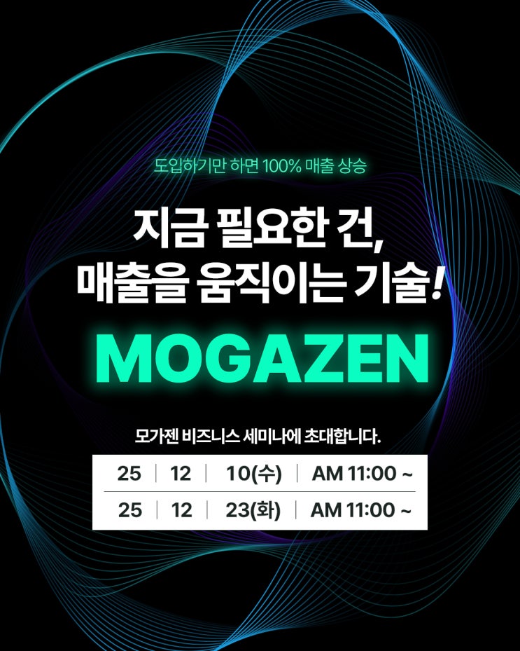 안녕하세요! 모가젠 본사 비즈니스 코치 임원장이예요!! 연말이 다가오면서 많은 원장님들이 신규 매출 확대와 안정적인 두피,탈모 케어 프로그램 구축에 대한 많은 문의를 주고 있는데요. 관심에 힘입어 12월 모가젠 비즈니스 세미나를 2회 진행해요. 이번 세미나는 탈모의 이해,모가젠 생장술 핵심, 살롱 매출을 올리는 연결 전략 등 살롱 운영에 꼭 필요한 내용을 한번에 파악할수 있는 유익한 시간이 될거예요. 모가젠이란? 모가젠(MOGAGEN)은 영양이 부족해 약해진 모발과 두피에 좋은 모가젠 앰플 42가지 성분을 직접 공급하여 모발이 두껍고 풍성하게 만들어주는 탈모, 두피 케어 전문 브랜드입니다. 모가젠 주요핵심성분 모가젠 앰플은 두....... <img src="https://blogthumb.pstatic.net/MjAyNTEyMDJfNSAg/MDAxNzY0NjQyODIxMTk3.ydzswUdE4M4C6iCiUbGX3gyG0FNKjHez2pynu33tlWEg.eL4vj3p44y03-vyp-53a-DqOK4eoMCDzRaqFBNSvbngg.JPEG/12%BF%F9_%B8%F0%B0%A1%C1%A8_%BA%F1%C1%EE%B4%CF%BD%BA_%BC%BC%B9%CC%B3%AA%C5%BB%B8%F0%2C%B5%CE%C7%C7%C4%C9%BE%EE%B7%CE_%B8%C5%C3%E2_23%B9%E8_%BF%C3%B8%AE%B4%C2_%C0%FC%B7%AB_%B0%F8%B0%B3_%2811%29.jpg?type=s3" />