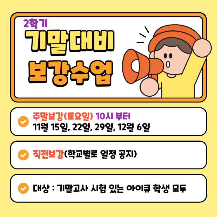 2025년 2학기 기말고사대비 주말특별 보강안내
