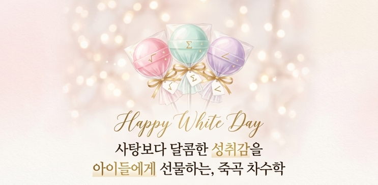 안녕하세요, 죽곡 차수학입니다. 오늘은 연인이나 가족끼리 달콤한 마음을 전하는 화이트데이이자, 완연한 봄기운이 느껴지는 토요일입니다. 평소에는 아이들 문제집의 '빈칸'과 '오답'을 잡느라 조금은 엄격한 원장님이었지만, 오늘만큼은 우리 아이들과 학부모님들 마음속에 '동그라미' 같은 달콤함만 가득하시길 바라는 마음으로 안부를 전합니다. 수학도 사탕처럼 처음엔 딱딱하고 어렵게 느껴지지만, 그 원리를 깨닫고 나면 입안에서 녹는 사탕처럼 달콤한 성취감을 주곤 하죠. 우리 아이들이 수학을 '쓰고 싶지 않은 숙제'가 아니라, **'풀어냈을 때 가장 기분 좋은 과목'**으로 느....... <img src="https://blogthumb.pstatic.net/MjAyNjAzMTRfMzYg/MDAxNzczNDgxNDcwMTYz.nYzGma7GaEdLKxADi5kaomVqXs3wAYYhJzrBSVsxtYIg.z_Gsb9Aq71vHewN3ghuA8luBNaw0sg1TUUHscWjFHg8g.PNG/%B4%EB%BD%C7%BF%AA%C2%F7%BC%F6%C7%D0_%C8%AD%C0%CC%C6%AE%B5%A5%C0%CC.png?type=s3" />