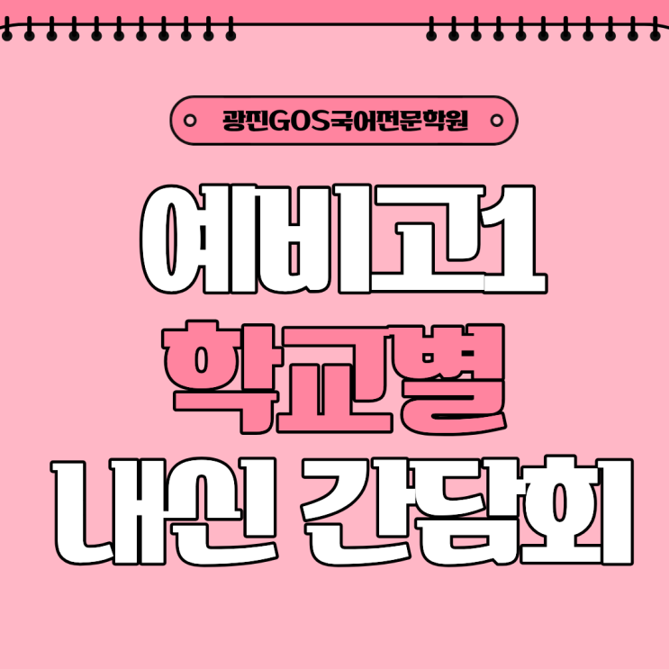 안녕하세요! 광진GOS 국어전문학원입니다. 2026년도 고1 학교별 내신 간담회 일정 안내입니다. 고등국어 학습이 고민이신가요? 고민 중인 학생과 학부모님을 위해 광진GOS에듀가 준비했습니다! 광남고, 건대부고, 가람고, 대원여고, 대원고, 자양고, 광양고의 국어 내신 경향 및 광진GOS에듀만의 내신 대비 전략 및 내신 대비 일정을 모두 알려드리고자 합니다! " 고등학교 선택부터 고3 입시까지! " 학습의 주체는 학생입니다! 이제부터 학생 여러분이 잘 알고 잘 만들어야 합니다. 가장 가치있는 선택지를 알려드립니다! 많은 신청 바랍니다:) <세부 내용> 대상: 예비고1 학생 및 학부모 일시: 학교별 일정 확인 장소: 광진GOS....... <img src="https://blogthumb.pstatic.net/MjAyNjAxMjZfMTg1/MDAxNzY5Mzk4OTcyMzgw.Nuw8J-MRfhhqTlPCAYLsRy5nmYrU84qJDYBA9P3bBmEg.XXhu3yFLaCt84AxvlBzA-_0L4N_hwNrcThXZzpyqP6cg.PNG/%C1%A6%B8%F1%C0%BB_%C0%D4%B7%C2%C7%D8%C1%D6%BC%BC%BF%E4..png?type=s3" />
