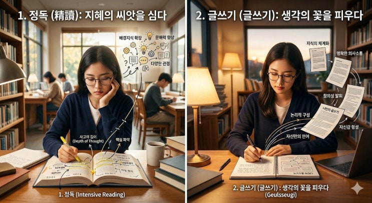 학부모님 상담 중 가장 안타까운 순간은 "우리 아이는 어릴 때부터 책을 정말 많이 읽혔는데, 왜 중·고등학생이 되니 성적이 나오지 않을까요?"라는 질문을 들을 때입니다. 하지만 분명히 말씀드립니다. 질문 자체가 잘못되었습니다. '우리 아이가 책을 제대로 읽지 않고 답만 찾았을까요?'가 맞는 질문 아닐까요? 책을 '읽기만' 해서는 국어 성적이 오를 수 없습니다. 성적이 오르지 않는 진짜 이유는 '입력(Input)'만 있고 '출력(Output)'이 없기 때문입니다. 1. 왜 읽기만 해서는 성적이 오르지 않을까? 독서는 뇌에 지식이라는 재료를 넣는 '입력' 과정입니다. 하지만 수능 국....... <img src="https://blogthumb.pstatic.net/MjAyNjAzMDJfNjIg/MDAxNzcyMzg0NTg5ODA4.jVGprcHyYmDrelwqDzwNSTiWIaPdxFd4KDq2KyNDPn8g.0k5uagNWDJgqRygJ47aoA8l9m2GQeq91DNsn_FlKH8Eg.JPEG/KakaoTalk_20260302_020232522.jpg?type=s3" />