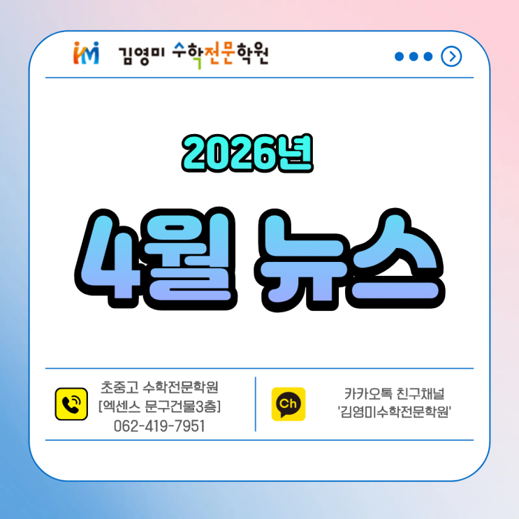 매곡동 용봉동수학학원 김영미수학의 4월은 열공모드 ON! 일정과 소식 안내