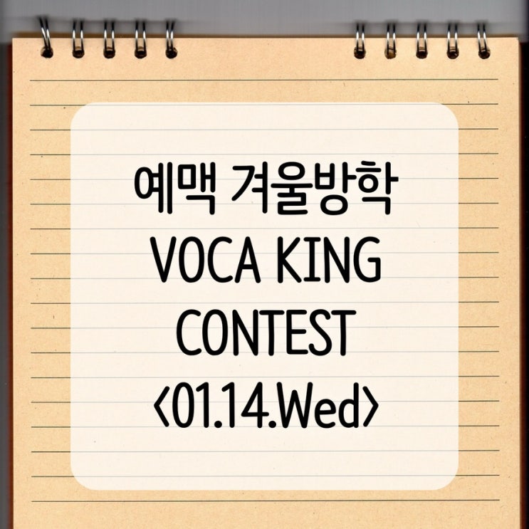 안녕하세요! 예맥학원입니다 :) 본격적인 겨울 방학이 시작되었는데요! 다가오는 3월 새학기를 대비하기 위해 우리 예맥 친구들이 아주 열심히 공부하고 있습니다ㅎㅎ 겨울방학은 평소보다 공부에 집중할 수 있는 시기죠~ 절대 놓쳐서는 안 될 중요한 시기인데요! 우리 예맥 친구들의 영어 보카 실력을 쑥쑥 올라가게 해 줄 VOCA KING CONTEST가 개최됩니다!! <1월 14일 수요일> 보카 킹 콘테스트는 수준별로 실버, 골드, 다이아몬드. 총 세 개의 레벨로 나누어지는데요! 실버 = 30개 골드 = 60개 다이아몬드 = 90개 영어의 가장 기본이자 핵심이라고 할 수 있는 단어를 집중 암기할 수 있는 절호의 기회입니다!ㅎㅎ 벌써 우....... <img src="https://blogthumb.pstatic.net/MjAyNjAxMTJfODUg/MDAxNzY4MjExMTQ4OTAy.6lNkeDaNUPs3WblBx2lkDbxVkw7ZPfVNFq6-Uu6I17wg.XFNjboaBOI9oQLe-x_PQ8ZGozMXSP0X0k9n_o710WvAg.JPEG/IMG%A3%DF3034.JPG?type=s3" />