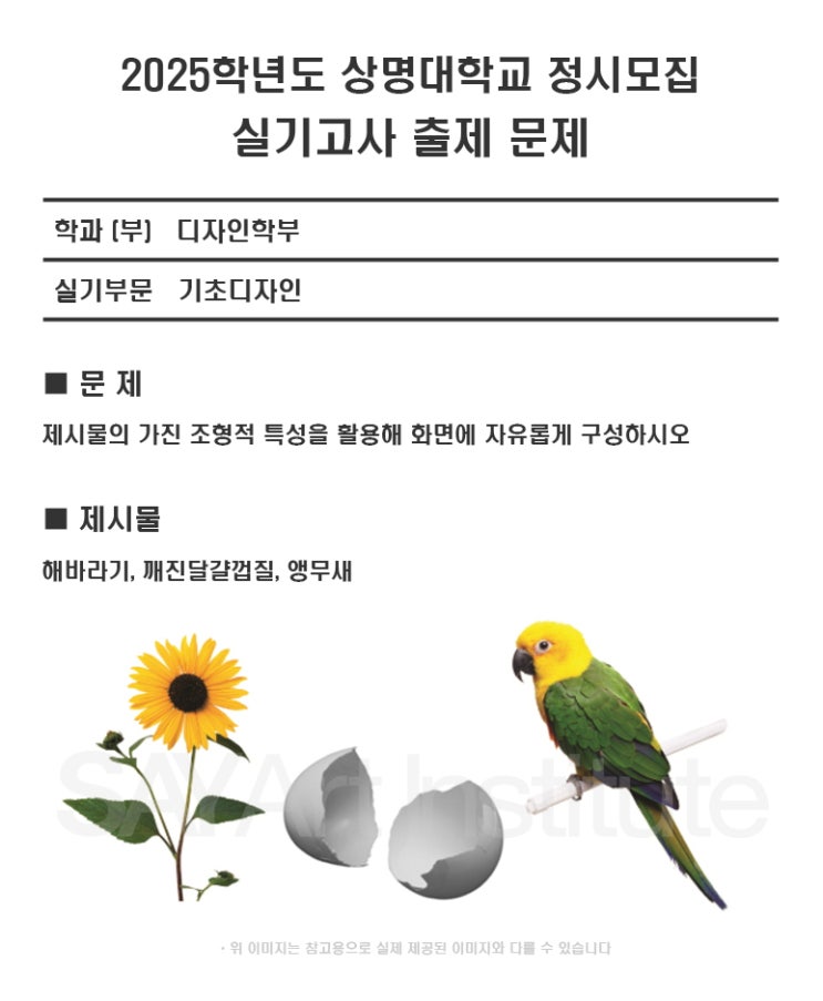 상명대학교(천안) 2025~2024학년도 디자인학부, 무대미술전공, AI미디어콘텐츠전공 정시 기초디자인 주제