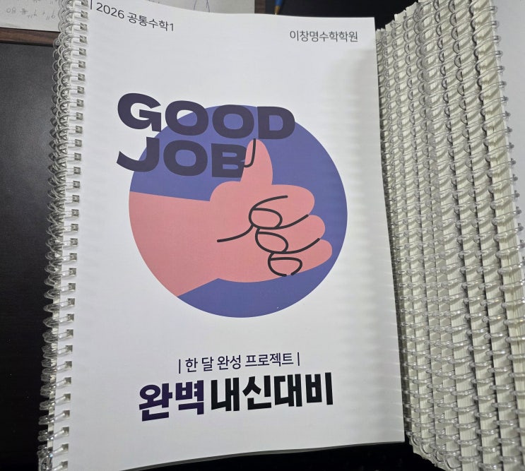 안녕하세요 이창명수학학원입니다. 이번에 제작한 고1 내신대비 자체교재가 배송되었습니다. 고1 공통수학1 교재는 고2 대수 교재와는 구성이 조금 다릅니다. 고1은 이번 시험범위가 다항식과 곱셈공식, 인수분해, 항등식, 복소수, 이차방정식, 이차함수입니다. 해당 내용들은 계산하는데 많은 시간을 필요로하는 유형들이 대부분입니다. 그래서 이번 교재는 계산연습을 빡빡하게 할수있도록 준비했습니다. 문제를 보자마자 손이 움직일수있도록 말이죠. 이렇게 해야 시험이 어려워도 시간확보가 가능해서 어려운문제를 풀어볼 시도를 해볼수 있습니다. 몇몇 단원에서는 노가다를해서 답을 구할수있는 유형들이 나오는 경우가 있어서 시간확보가....... <img src="https://blogthumb.pstatic.net/MjAyNjA0MDVfNjgg/MDAxNzc1Mzk1NDU4Njgy.s3k0Svx8zTZ54adnNfJcNOSkY0epzwwYqTJ_qJpXkAkg.CHuxk8ycqZvBFqbQ0Y5EzR_uVpDTwBpL84bCtBwjmgAg.JPEG/KakaoTalk_20260405_220548463_04.jpg?type=s3" />