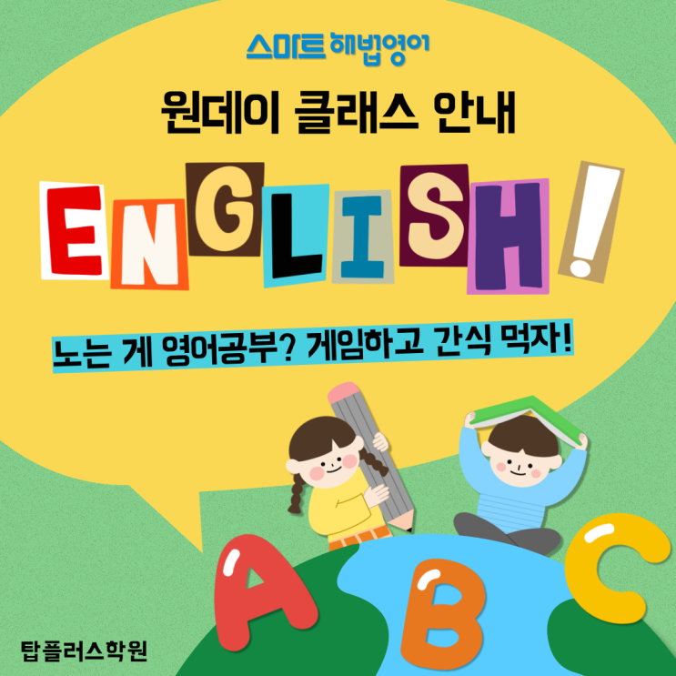 안녕하세요! 스마트해법영어 곡반정점 탑플러스학원입니다. 우리 안룡초 아이들, 매일 단어 외우고 문법 공부하느라 가끔은 지쳐 보일 때가 있죠? 부모님들도 우리 애가 영어를 좀 더 재밌게 배울 순 없을까? 고민 많으셨을 거예요. 그래서 준비했습니다! 영어가 공부가 아니라 놀이가 되는 시간 재밌게 마스터하는 기초 영어 원데이 클래스 소식을 들고 왔어요!✨ 이번 원데이 클래스, 무엇을 배우나요? 노는 줄만 알았는데, 집에 올 땐 영어 실력이 쑥! 초등 영어의 뼈대가 되는 핵심 내용만 쏙쏙 골라 게임처럼 재밌게 풀어냅니다. 공부가 게임이 되는 마법 같은 시간! 스마트해법영어만의 체계적인 커리큘럼에 재미를 한 스푼....... <img src="https://blogthumb.pstatic.net/MjAyNjAyMDRfMTI3/MDAxNzcwMjE2MzczOTU4.gm5YZkgHIBYy4zRoS9ahr0Ybui5Po0T_-HRZxUI30I0g.5z3D3KQDmdMMsgXyZB0iII4fLNga_IYbTM5agZSjj8Mg.PNG/%BF%F8%B5%A5%C0%CC%C5%AC%B7%A1%BD%BA%BD%E6%B3%D7%C0%CF.png?type=s3" />