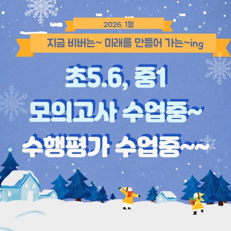 비버영어전문학원입니다. 2026년 새해의 설레임과 함께 우리 학생들의 실력도 한 뼘 더 성장하는 1월입니다. 현재 저희 비버영어학원에서는 초5부터 중등부끼지 신학기 '성적 역전'을 위한 열띤 방학특강이 한창중이랍니다. 우리 아이들이 어떤 몰입의 시간을 보내고 있는지, 왜 지금 이 수업들이 필요한지 핵심만 집어 전해 드립니다. 초5부터 고등영어정복! 프리미엄 클래스의 남다른 행보! 지금 비버영어에서는 "모의고사 실전 특강"이 한창이랍니다. 초5-6 프리미엄클래스: 고1 모의고사 특강진행 중~~ 중1 프리미엄클래스: 고2 모의고사 특강진행 중~~ 초등학생이 고등 모의고사를? 중1이 고2 모의고사 문제를? 단순히....... <img src="https://blogthumb.pstatic.net/MjAyNjAxMTdfOTcg/MDAxNzY4NjU0MzQwNTk0.HQWTOmWWFEoSayIKDPY89ULyXVj6MorB58ZPLngeCBkg.L1_EzqMPYuxC_9lq1TIHJmQKI3cXPf-v7lU6Dj71K2og.JPEG/KakaoTalk_20260117_215116483.jpg?type=s3" />