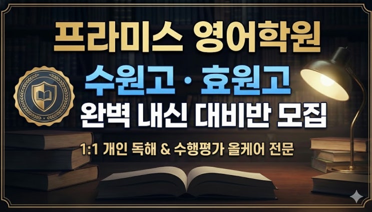 수원고·효원고 배정 확정! 전략 없는 내신을 방지하고 최선의 대비를 위해 준비합니다. 안녕하세요, 프라미스 영어학원입니다. 최근 고등학교 배정 결과가 발표되면서 권선고, 곡정고 뿐만아니라 수원고등학교와 효원고등학교 배정받은 학생과 학부모님들의 신규 문의가 쇄도하고 있습니다. "수원고는 부교재 비중이 높다던데...", "효원고는 서술형이 정말 어렵다던데..." 새로운 시작에 대한 설렘보다 내신 걱정이 앞서신다면, 프라미스 자이 영어학원에 문의해 주시기 바랍니다. 1. 수원고 & 효원고, '학교별 전담반'이 필요한 이유 수원고와 효원고는 시험의 성격이 완전히 다릅니다. 주변 학교들과 묶어....... <img src="https://blogthumb.pstatic.net/MjAyNjAxMjNfMTg3/MDAxNzY5MTQ0NDk4NDI0.yYef9B17JueF3rE5uf-ZCfNHgQhEHvK1W_uC0EbhAlAg.vuklnUb0buFbzy9NtlFxjF_4TGOTEJe-KQT5MGRXm4Yg.JPEG/unnamed.jpg?type=s3" />