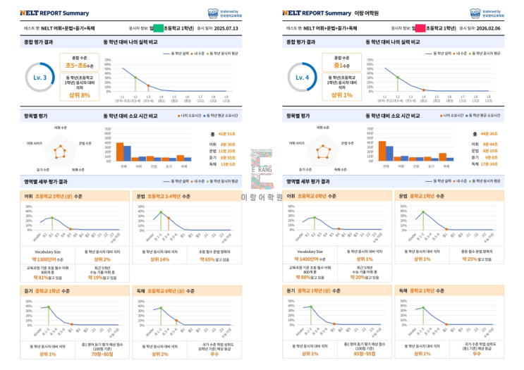 안녕하세요! 이랑어학원입니다. NELT 테스트, 점수만으로는 충분하지 않습니다! 단순한 점수 평가로는 아이가 어디서 강하고 어디서 부족한지, 앞으로 어떻게 성장할 수 있는지 제대로 파악하기 어렵습니다. 진짜 실력 향상은 정확한 분석에서 시작됩니다. 저희 학원은 NELT 테스트 후 1:1 맞춤 상담을 통해 아이의 영어 실력을 세밀하게 진단합니다. 어휘, 문법, 독해, 듣기 영역별 강약점 확인 문제 유형별 취약점 분석 현재 수준과 성장 가능성에 맞는 학습 전략 제안 영어 자신감과 불안감까지 함께 체크 이 과정을 통해 아이가 지금 어디에 있는지 정확히 이해하고, 앞으로 어떤 공부가 필요한지 구체적으로 안내합니다. 제4회 NELT에서 레....... <img src="https://blogthumb.pstatic.net/MjAyNjAzMTdfMTMy/MDAxNzczNzE3NjQ3OTg0.WY-sZbIm4nOJk1VkldTxrnH1jB1QtmdxeFxlgIMQiR8g.Hiz0NaK0kdNyabVHOJGWH06FDv8hF-yftfF0QfubIDsg.PNG/15.png?type=s3" />