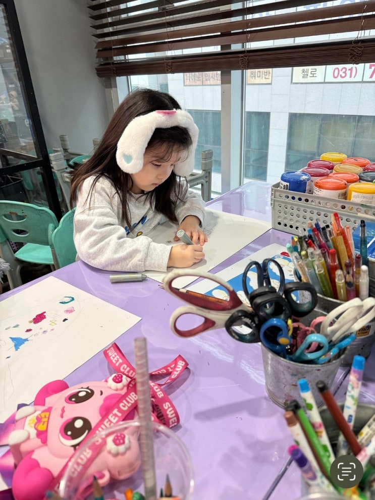 오늘은 유치부의 스케이트 만들기를 해 볼 겁니다! 파스넷으로 열심히 색칠해주고 있어요! 아연이,은재,유주 다들 스케이트를 예쁘게 꾸며줬어요! 아이들이 펀칭기를 너무 잘 써요! 두번 째 수업 시간엔 스케이트를 다 색칠해준후 오려줘서 펀칭기계로 구멍을 뚫어줬습니다! 작은 손으로 야무지게 구멍을 뚫어주는 모습들! 후~후 불어주는 모습! 세번 째 수업시간엔 스케이트를 타는 빙판을 파스텔로 밀어준 후 물감을 후후 불어서 빙판 느낌으로 만들어 줬습니다! 마지막으로 OHP 필름지에 하얗고 파란 아크릴 물감들을 튀기고 빙판에 눈송이 모양 도장을 찍어줘서 완성 해줬습니다! ՞⸝⸝ʚ̴̶̷̷ · ʚ̴̶̷̷⸝⸝ ՞ <img src="https://blogthumb.pstatic.net/MjAyNjAzMjVfMjA0/MDAxNzc0NDA5MTkzNzY3.vzVr8iypOx542uNSA336RBP4sEN5FvldusAm3dLMAgEg.GEp2w2TFeOuOTGA-0lHyAXzv4T10aonez3UDkqssIc4g.JPEG/IMG%A3%DF8568.jpg?type=s3" />