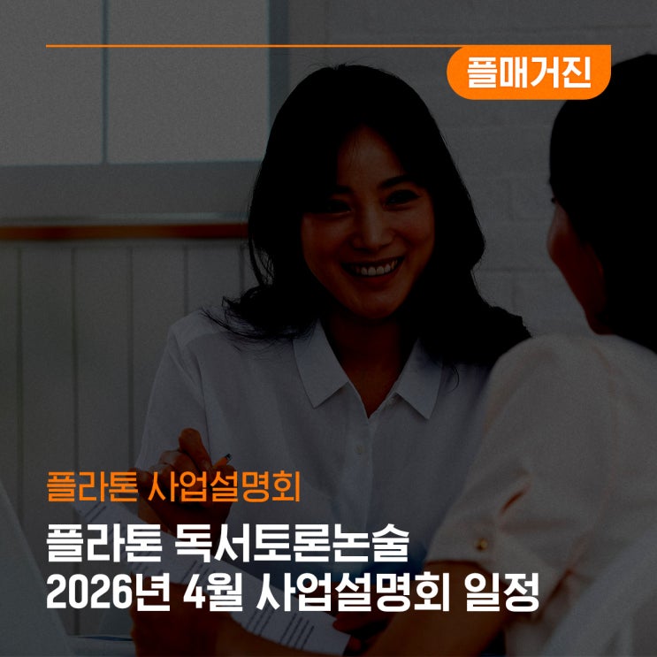 4월은 ‘시작’보다 ‘지속력’이 중요해지는 시기입니다. 학부모들은 이 시기에 흔들리지 않는 학습 구조를 찾기 시작합니다. 그래서 단순한 커리큘럼이 아닌, 아이의 생각과 습관을 함께 만드는 플라톤에 대한 관심이 높아지고 있습니다. 교육의 방향을 다시 잡고, 안정적인 성장과 운영을 만들고 싶다면 이번 4월 플라톤 사업설명회에서 직접 확인해 보세요 예비 원장님을 위한 2026년 4월 신규 오픈 혜택! 플라톤 독서토론논술 <2026년 4월 사업설명회> 일정 및 연락처 안내! 해당 지역 플라톤 독서토론논술 지국의 위치 및 연락처를 꼭! 확인하시고 사전문의를 통해 사업설명회 관련 안내받으시길 바랄게요 플라톤 독서토....... <img src="https://blogthumb.pstatic.net/MjAyNjAzMzBfMjY5/MDAxNzc0ODM0NjY2MTE2.AWWiY0WwBjzaNDdBuTMMEe4zL75-bXm9D5AYY0xJHnUg.xyMG0-Xr1HsslCV3hCPa-nGGV8RxoBOZHKkTiP13EZwg.JPEG/%C7%C3%B6%F3%C5%E6_%BD%E6%B3%D7%C0%CF_2025.jpg?type=s3" />