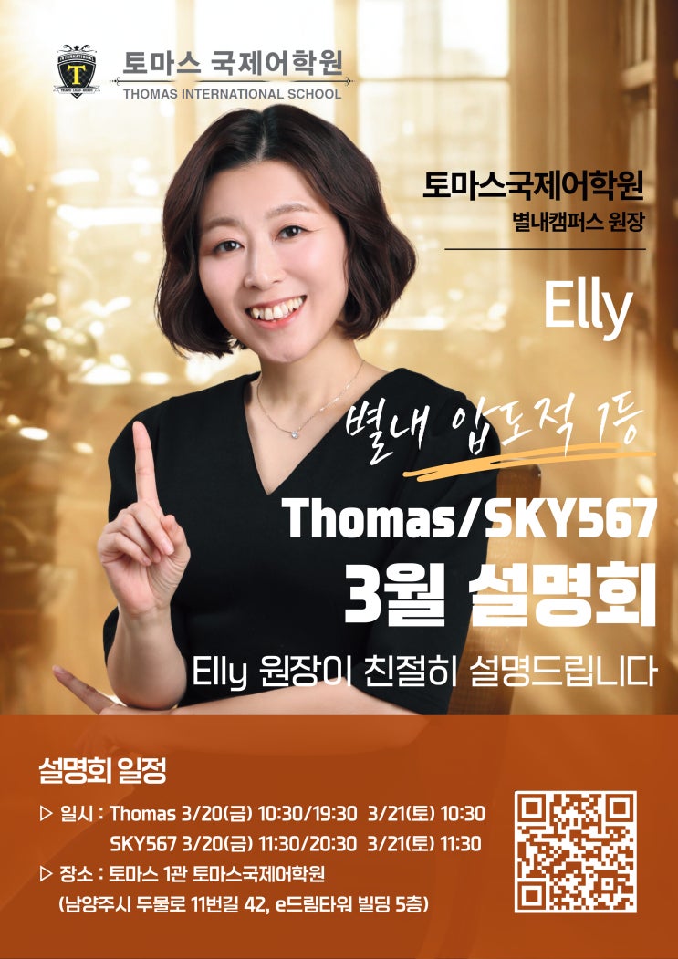 안녕하세요, 토마스 국제어학원입니다. 이번 주면 2월도 끝나고 만물이 생동하는 3월이 시작됩니다. 신학기 개학, 입학을 앞두고 설레고 긴장하는 마음이 가득한 가운데 토마스 국제어학원도 Thomas-SKY567-Hyper 많은 클래스의 개강을 앞두고 있습니다. 3월 정기 설명회에 참여하셔서 별내동 1등 영어 학원을 체험해보세요! <img src="https://blogthumb.pstatic.net/MjAyNjAyMjdfMTcy/MDAxNzcyMTcwODUxNzEy.53oprQjmfSpmEu5uMZLpmXLKtFA59Q7Ll5rSGHyOqJ4g.cgVUamXkOXVX7DBVcUVX4dEHRN-I9M6Ffwb0R9-c3AQg.JPEG/%28202603%29%C5%E4%B8%B6%BD%BA_%C1%A4%B1%E2%BC%B3%B8%ED%C8%B8_page-0001.jpg?type=s3" />