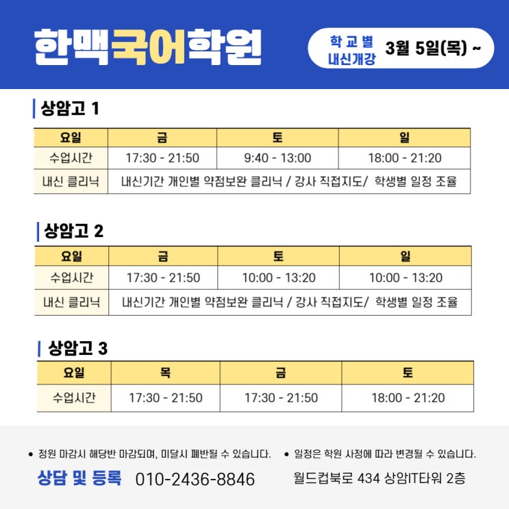 [마포국어/은평국어] 26년 1학기 상암원 시간표