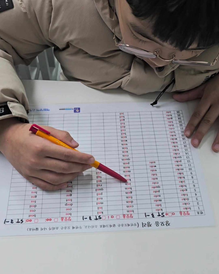 우리 해법이의 맑은 목소리가 교실을 넘어 복도까지 울려 퍼지는 순간입니다. “아, 지금 우리 해법이가 영어를 ‘읽는 힘’을 제대로 만들어가고 있구나.” 하는 확신이 드는 순간이 있습니다. 오늘은 장모음 학습을 마치고 복습 읽기 테스트 합격을 목표로 한 글자, 한 소리 또박또박 낭독하던 초등 3학년 해법이의 모습이 너무나 사랑스러워 저도 모르게 영상을 남겼습니다. 그 목소리가 얼마나 멋지던지요..~^^ 장모음 완성, 읽기의 시작입니다. 이번에 우리 초등3학년 해법이가 마무리한 내용은 a_e / ai / ee / ea / i_e / o_e / u_e 등 핵심 장모음 패턴입니다. 단순히 “외운다”에서 끝나는 것이 아니라 보고 읽고, 읽고 이해....... <img src="https://phinf.pstatic.net/image.nmv/blog_2026_02_27_185/4RtBdYAq0o_03.jpg?type=f480x480" />