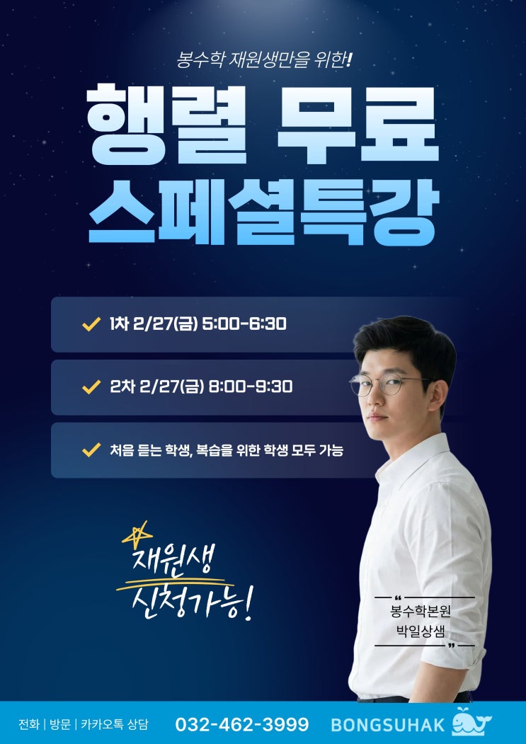 구월동 수학학원) 봉수학 행렬 무료 스페셜특강 안내