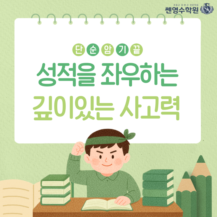 2026 수능국어, 이제는 ‘깊이 있는 사고력’이 성적을 좌우합니다 안녕하세요~ 쎈영수학원입니다! 지금 쎈영수학원은 겨울방학을 맞아 중고등부 학습 관리와 다가오는 새 학년 준비로 하루하루 바쁘게 달리고 있어요 ^^ 차가운 겨울 날씨 속에서도 아이들의 공부에 대한 열정만큼은 그 어느 때보다 뜨거운데요. 초·중·고 학생이랄 것 없이 각자의 목표를 세우고 자기 자리에서 최선을 다하는 모습에 저희도 매일 큰 보람을 느끼고 있습니다. 오늘은 대구 신암동 복현동 국어학원으로서 많은 학부모님들께서 지금 시기에 꼭 알고 계시면 좋을 2026 수능국어의 변화와 왜 지금부터 깊이 있는 사고력 학습이 필요한지에 대해 이야기해보려 합니다. ....... <img src="https://blogthumb.pstatic.net/MjAyNjAxMjNfMjEx/MDAxNzY5MTYwMzQ3ODQ4.RQdV0tdv8KoGG9iyVsIGJJLlZxyyi2F2Znvo6pbWk3sg.W-aLMBUvoTi0Uatak0V7BJJX0J9f_tuxkwvjrdKuO6sg.PNG/%C1%A6%B8%F1%C0%BB_%C0%D4%B7%C2%C7%D8%C1%D6%BC%BC%BF%E4._%281%29.png?type=s3" />