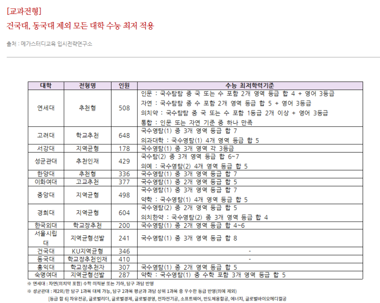 2027 주요대학 수능최저학력기준