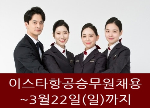 #이스타항공채용 #이스타항공승무원 #승무원채용 2026년 승무원 채용소식입니다. 이스타항공 객실승무원 모집이 2026년 3월 22일(일)까지입니다. 1.지원자격 토익이 670점 또는 토스 IM3 또는 OPIc IM2 이상으로 타항공사에 비해 어학점수 기준이 높습니다. 우대요건이 간호학과 전공자 및 관련자격증 보유자와 일본어, 중국어, 러시아어 능력 우수자인만큼 전문성을 요구한다는 의미이기도 합니다. 2.전형 절차 상황대처면접이 있는데, 승무원의 직무를 잘 이해하고 상황을 유연하게 대처하는 능력과 센스를 요구한다는 것을 알 수 있습니다. 또한 '국민체력100'이 아닌 자체 체력테스트를 임원면접 전에 한다는 것은 그만큼 승무원의....... <img src="https://blogthumb.pstatic.net/MjAyNjAzMTdfOTgg/MDAxNzczNzM0ODI4MjQz.QXwbCtwh4XP_t9RENgTLjhhIGk5g1L-JGU8tvZgxSEAg.P8OBU-69Rg9xl1sHVTr_otocHJPKuWy2zVfWhm2UMzsg.JPEG/%C0%CC%BD%BA%C5%B8%BD%C2%B9%AB%BF%F8%C3%A4%BF%EB.jpg?type=s3" />