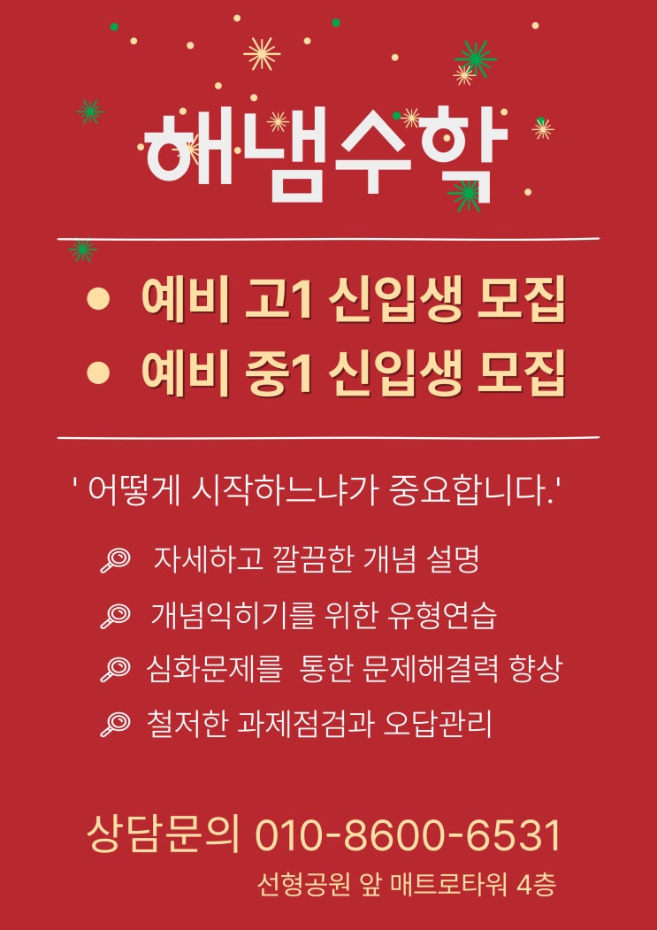 해냄수학에서 얼마안남은 겨울방학을 같이해요!