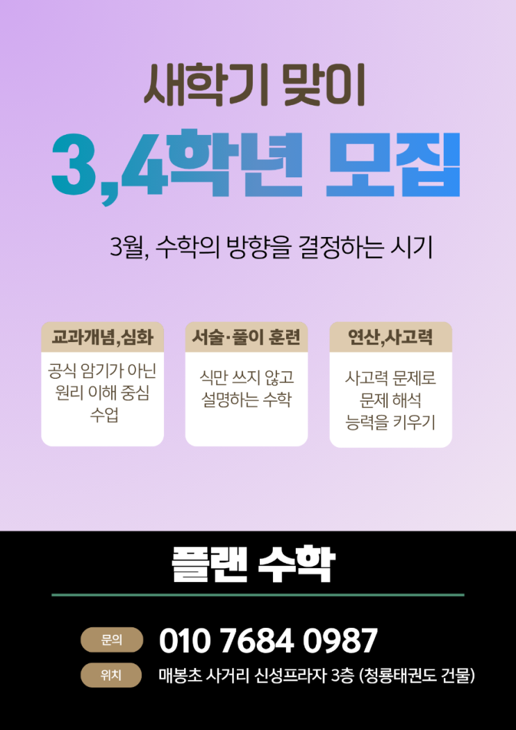 상현동,성복동 초등3,4학년 수학은 플랜수학에서 시작하세요