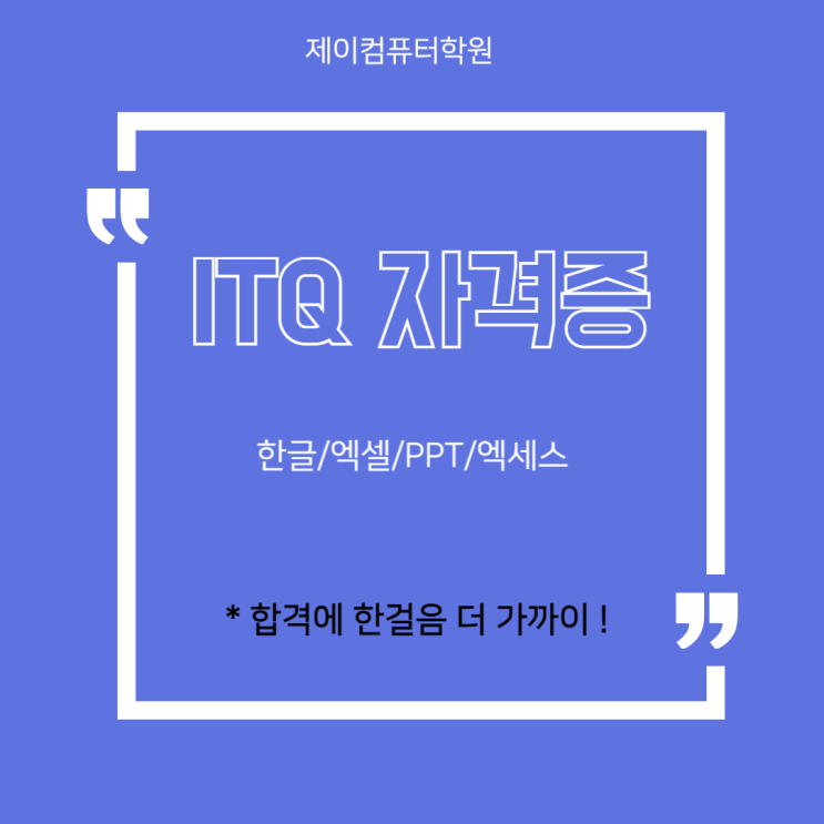 은평구컴퓨터학원_제이컴퓨터학원 / ITQ 자격증 / 단기합격/ 시험정보 / 난이도