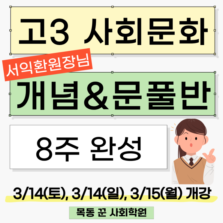 [목동꾼사탐]고3 사회문화 개념완성반&문풀반 서익환원장 3/14(토),3/15(일),3/16(월) 개강안내