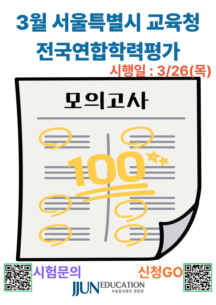 [쭌에듀학원 송도점] 쭌에듀 3월 서울특별시교육청 모의고사(전국연합학력평가) 시행 안내!