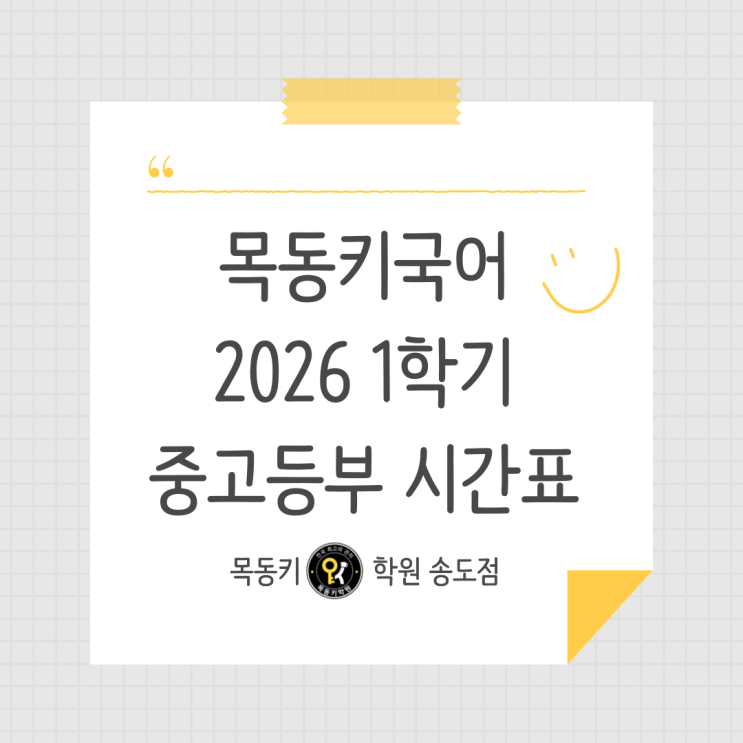 안녕하세요, 목동키국어영어학원입니다. 송도 중고등부 국어 정규수업 시간표를 안내드립니다. 중등 [1학년] [2학년] [3학년] 추가 개설이 가능하니, 편하게 문의주세요♥ 고등 [1학년] [2학년] [3학년] 추가 개설이 가능하니, 편하게 문의주세요♥ <img src="https://blogthumb.pstatic.net/MjAyNjAyMjRfMTkz/MDAxNzcxOTA0NTQyNDk3.qJZYwTVLo9hxKx1tRLJ3HkWbmT1kYdecOz4L-pmHMqUg.foDO2TrQVJ1IzQJt6kWf-wdRycYcZ7MM5F8G99qNQe0g.PNG/%3F%A0%9C%EB%AA%A9%EC%9D%84-%3F%9E%85%3F%A0%A5%3F%95%B4%EC%A3%BC%EC%84%B8%3F%9A%94_-001_%2851%29.png?type=s3" />