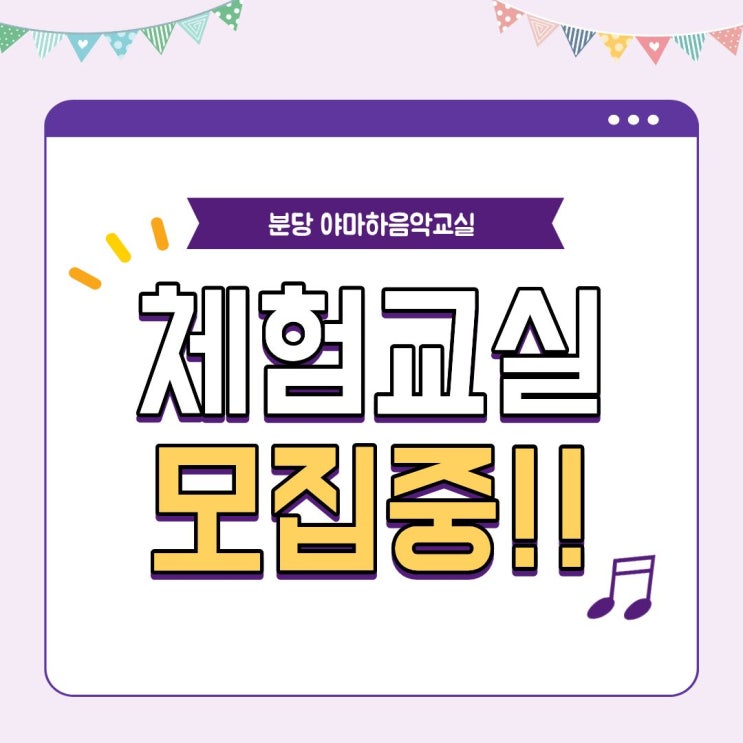 안녕하세요! 분당 야마하 음악교실입니다. 2026년도가 밝았습니다. 올해는 어떤 한 해가 되길 바라시나요? 어떤 것을 바라시든 모두 이루어지는 한 해가 되시길 바랍니다 분당센터에서는 현재 체험교실을 운영중입니다. ❓ 우리 아이는 어떤 수업이 잘 맞을까 ❓ 음악을 처음 접해보는데 너무 어려워하진 않을까 ❓어떤 악기를 제일 즐거워할까 마음에 걸리는 부분들이 많으실텐데요 그런 고민을 해결해드리기 위해 체험교실을 운영중입니다. 우리 아이가 어떤 것을 즐거워 하는지 학원에서는 어떤 모습인지 직접 확인 하실 수 있는 좋은 기회 누구든지 부담 없이 참여하실 수 있어요 ✨ 체험교실 혜택 안내 ✨ ✔️ 당일 등록 혜택 체험....... <img src="https://blogthumb.pstatic.net/MjAyNjAxMTBfMTU3/MDAxNzY4MDE2MTU5OTU0.06EPDiMJsS0D-e0-65LoU3NQ5tyGW_AJkAFXWTijmLsg.SfA_3IyM-E3E_IeMZu3tNC5OdbawaZ_1nIWgpra3AkMg.JPEG/%C4%AB%B5%E5%B4%BA%BD%BA_%283%29.jpg?type=s3" />