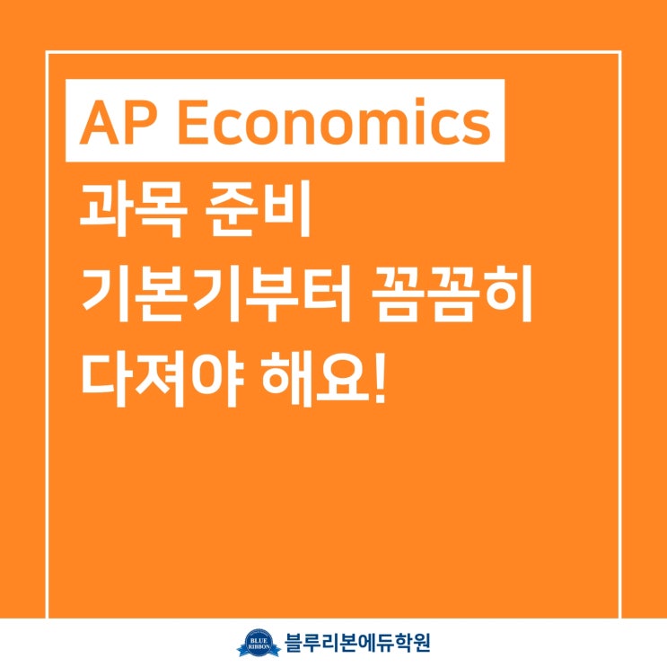 AP 과목 중에서도 상대적으로 쉬운 편에 속하는 AP Economics! 그런 만큼 처음으로 AP 시험 준비를 하는 사람이 가장 먼저 고려하는 AP 과목일텐데요. 그렇지만 기본기를 제대로 안 잡고 시작하면 난관에 봉착하기 쉬운 만큼 전문가의 지도를 받으면서 기본기부터 확실하게 기반을 잡은 뒤 준비하는걸 추천드립니다. AP Economics 과목을 준비할 생각이라면? 출제 스타일이 비슷한 미시/거시경제학을 함께 배우는걸 권장드리는데요. 작년부터 객관식 디지털 변경 및 커리큘럼도 변화한 만큼 출제 트렌드를 실시간으로 빠르게 반영하는 곳에서 준비해야 시간을 날리지 않고 효율적으로 준비할 수 있습니다. AP Economics 과목 기본기부터 착실하게....... <img src="https://blogthumb.pstatic.net/MjAyNjAxMjNfMjcx/MDAxNzY5MTU5NTI2NzU5.kyGuGKq-74Lu4H98hWIrdy1EBIRk97FxYZ8VUIp0ndYg.LEk0mWE5WBWvrsEp8N35QjswneP-N_UTW2MPuqmLccUg.JPEG/260123_%BA%ED%B7%E7%B8%AE%BA%BB_%C4%AB%B5%E5%B4%BA%BD%BA_1.jpg?type=s3" />