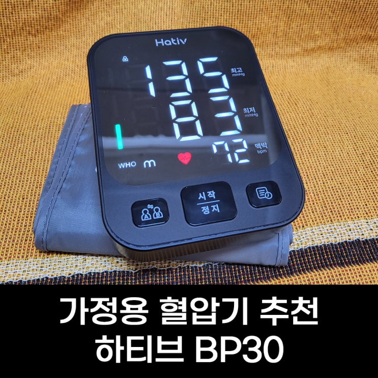 가정용 혈압기 추천 : 하티브 BP30 사용 후기 및 기능 리뷰 설 전 처리할 일이 있어 오전 반차 내고 주민센터에 갔던 날 대기표 뽑고 기다리는 동안 한켠에 비치되어 있던 혈압측정기로 혈압을 재봤는데 어랏… 혈압이 높게 나왔었다. 분명 작년 건강 검진 때는 정상 혈압이었던 것 같은데 이게 맞나? 싶어 그 날부터 혈압에 대해 이것 저것 찾아 보았었다. 몰랐던 사실인데 체중이 늘면 혈압도 같이 상승한다는 것 건강 검진 직후 살이 야금 야금 찌기 시작했는데 그 때문에 혈압이 높아진 걸로 추측이 되었다. 아침에 일어날 때마다 몸이 찌뿌둥하고 하루 종일 피곤한게 그래서였던가… 싶다. 쨌든 체중 관리에 들어 갔고 혈압 변동 추이를 보....... <img src="https://blogthumb.pstatic.net/MjAyNjAyMjdfMjk5/MDAxNzcyMTgwNzA0NzUz.7o_EXZaxVoBKn30YeRk463sIEm_FvHKesnO3plWl6kQg.OJbW-HEuhAFbO_aTugi5pZ9GnVIRmlbxbhg2X_3D2qog.JPEG/%BD%E6%B3%D7%C0%CF.jpg?type=s3" />