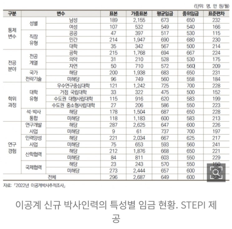 [히포크라테스과학전문학원] 이공계 박사 첫월급, 출신 대학별 차이 현황 조사!