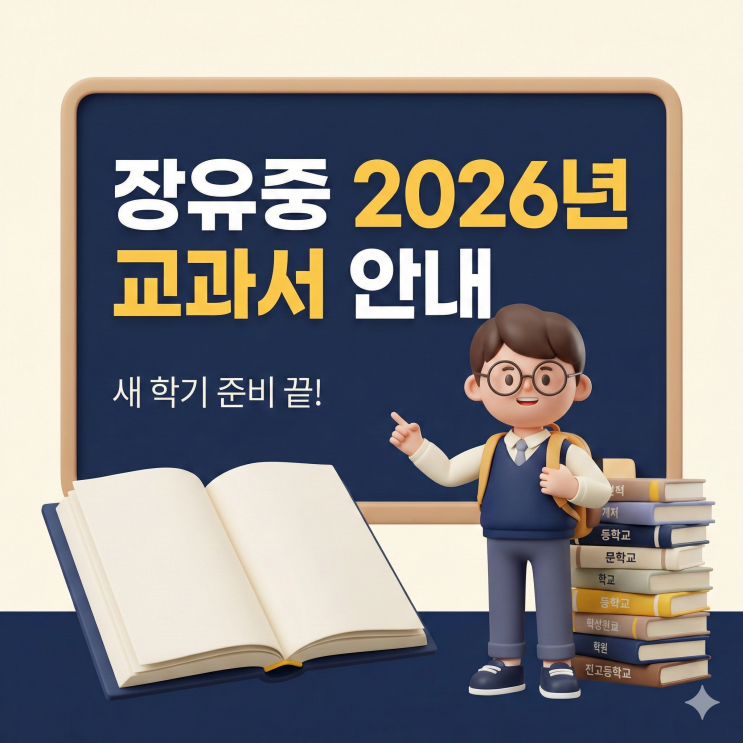 안녕하세요! 17년째 아이들과 함께 뒹굴며(?) 영어와 수학의 바다를 항해하고 있는, 프렌잉글리시&매쓰 김해율하 영어수학학원입니다. 오늘 아침, 출근길에 벚꽃 봉오리가 고개를 내미는 걸 보며 문득 이런 생각이 들더군요. "아, 이제 우리 아이들 교과서 챙겨줄 때가 됐구나!" (감성이 돋다가 갑자기 현실 원장 모드라니, 저도 어쩔 수 없는 교육인인가 봅니다. ㅎㅎ) 오늘은 장유중학교 학부모님들과 학생들을 위해 아주 중요한 정보를 들고 왔습니다. 바로 2026학년도 장유중 교과서 선정 현황입니다! 2026학년도 장유중학교 학년별 교과서 안내 새 학기 준비의 시작은 '지피지기'입니다. 어떤 교과서로 공....... <img src="https://blogthumb.pstatic.net/MjAyNjAyMjVfMTAz/MDAxNzcyMDI5MDMwNjUw.DPsX8606TDZ27KGtitWKC0FYFTpqGSx_rJxAIR7NpJgg.7WTCKAs-p0hAmbM7WaDNVqPCQJTxEVgxdH5OmLJW2xAg.PNG/Gemini_Generated_Image_65ynaz65ynaz65yn.png?type=s3" />