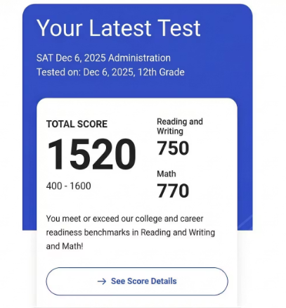 SAT 1520점 달성! 학생의 노력과 이고프렙 전략이 만든 결과 단순한 고득점을 넘어, 체계적인 학습 전략과 꾸준한 노력이 만들어낸 값진 결과입니다. 단순히 단어를 암기해서 해석하는 것만으로는 충분하지 않습니다. 오해하지 마세요. 단어 암기가 필요 없다는 것이 아닙니다. 단어 암기는 필수 조건이에요. 보드게임을 하는데 규칙을 알아야 하는 것은 당연한 1단계 입니다. 규칙을 가지고 놀수 있어야 전략이 생깁니다. 내 전략 가지고 먹히는지 플레이를 많이 해봐야 성공 전략이 몸에 익습니다. 그래서 SAT 고득점의 핵심은 단어라는 규칙을 가지고 빠르게 전략을 뽑아낼수 있는 논리까지 연습해야 합니다. 긴 지문 속에서도 글이 말하....... <img src="https://blogthumb.pstatic.net/MjAyNjAyMDlfODMg/MDAxNzcwNjMwNzkzOTkz.mBDGazAuzqrvrTpvY_okhhRZZUZem_GJKCIFcvWF0SIg.fUDukNYU73Ejfta4nGcsBSkB5kIgr_mIOaurLyV6NMwg.PNG/%BD%BA%C5%A9%B8%B0%BC%A6_2026-02-09_185240.png?type=s3" />