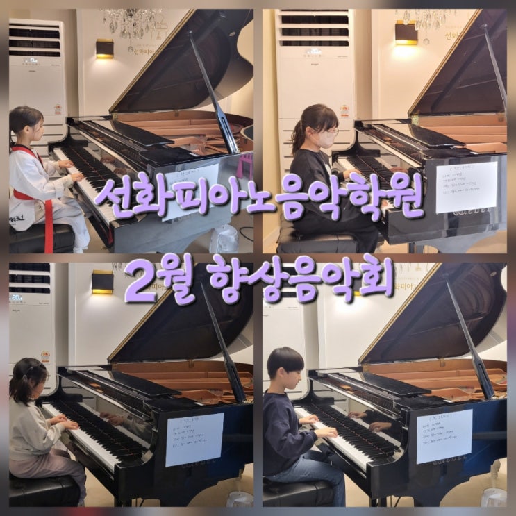 안녕하세요 :) 선화피아노음악학원입니다. 2026년의 해가 왔는데요 저희 선화피아노음악학원에서는 2월 향상음악회를 진행했어요! 그 현장으로 같이 가보실까요~? 2월 향상음악회 연주영상 2달동안 열심히 연습해서 친구들 앞에서 멋지게 연주하는 선화둥이들❤️ 기특합니다 :) 연주 열심히 감상하는 선화친구들 연주홀에서 멋지게 연주하는 친구들을 집중해서 감상해주는 우리 선화둥이들! 멋진 관객의 에티켓도 보여주네요 :) 2달동안 열심히 연습해서 무대에 서면서 아이들이 연습 할 때 더 집중해서 연습하고, 자신감있게 연주하면서 연주력도 상승하는걸 보면서 선화원장선생님도 얼마나 뿌듯한지 몰라요! 앞으로도 늘 최선을 다해 음악교....... <img src="https://blogthumb.pstatic.net/MjAyNjAzMTBfNjgg/MDAxNzczMTA4NDI4ODcx.ya8jKqZxYByBhHPVVNhsN7auMZq03M-wdRHI15lLXdgg.QNv02HAW9azfIn9ooKBYBvocK0I1lt5AwSnpVx1msvAg.JPEG/900%A3%DF20260310%A3%DF105739.jpg?type=s3" />